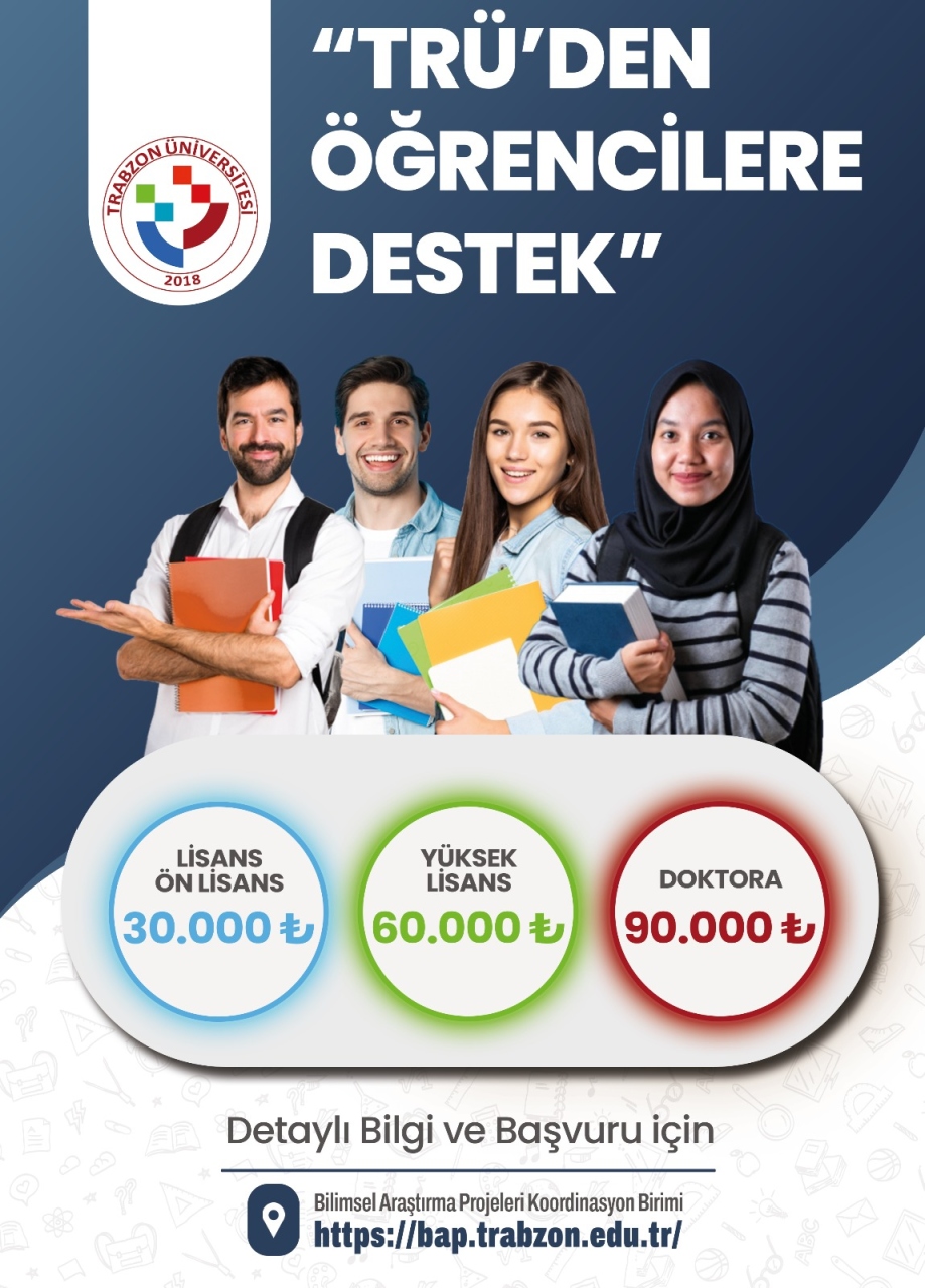 Trabzon Üniversitesi, öğrencilerinin araştırma faaliyetlerini artırmak ve araştırma yapmaya teşvik etmek amacıyla öğrenci projelerine destek sağlıyor! Detaylı Bilgi İçin: https://bap.trabzon.edu.tr/