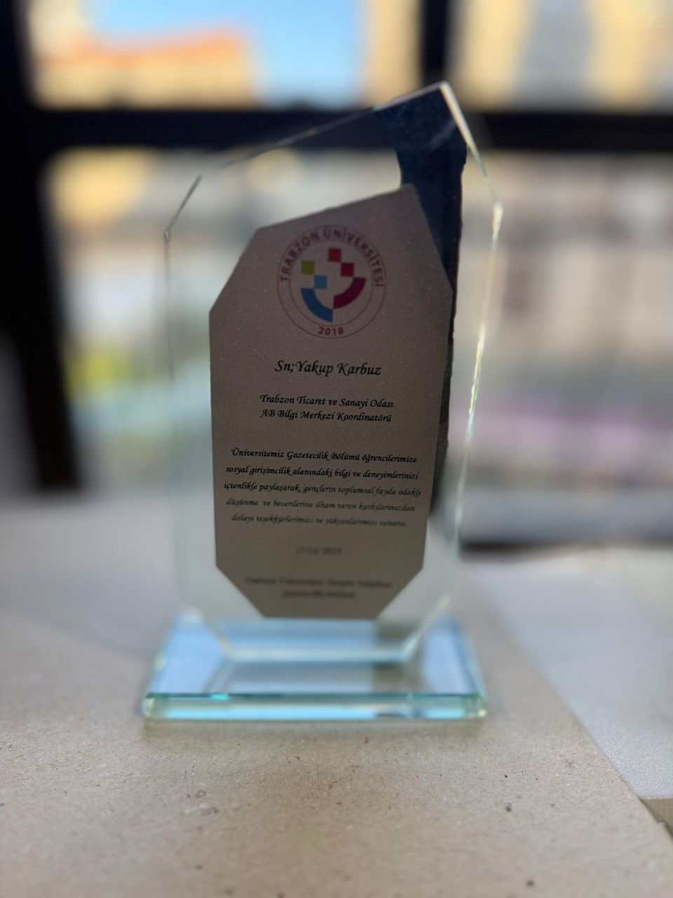 Fakültemiz Gazetecilik Bölümü 4. Sınıf öğrencilerimiz Girişimcilik ve Medya dersi kapsamında ders sorumlusu Taner BAŞFIRINCI beraberinde Trabzon Ticaret ve Sanayi Odası (TTSO) Trabzon AB Bilgi Merkezine öğrencileri ile bir ziyarette bulunarak "Sosyal Girişimcilik" konusunda bilgi alışverişinde bulundular.